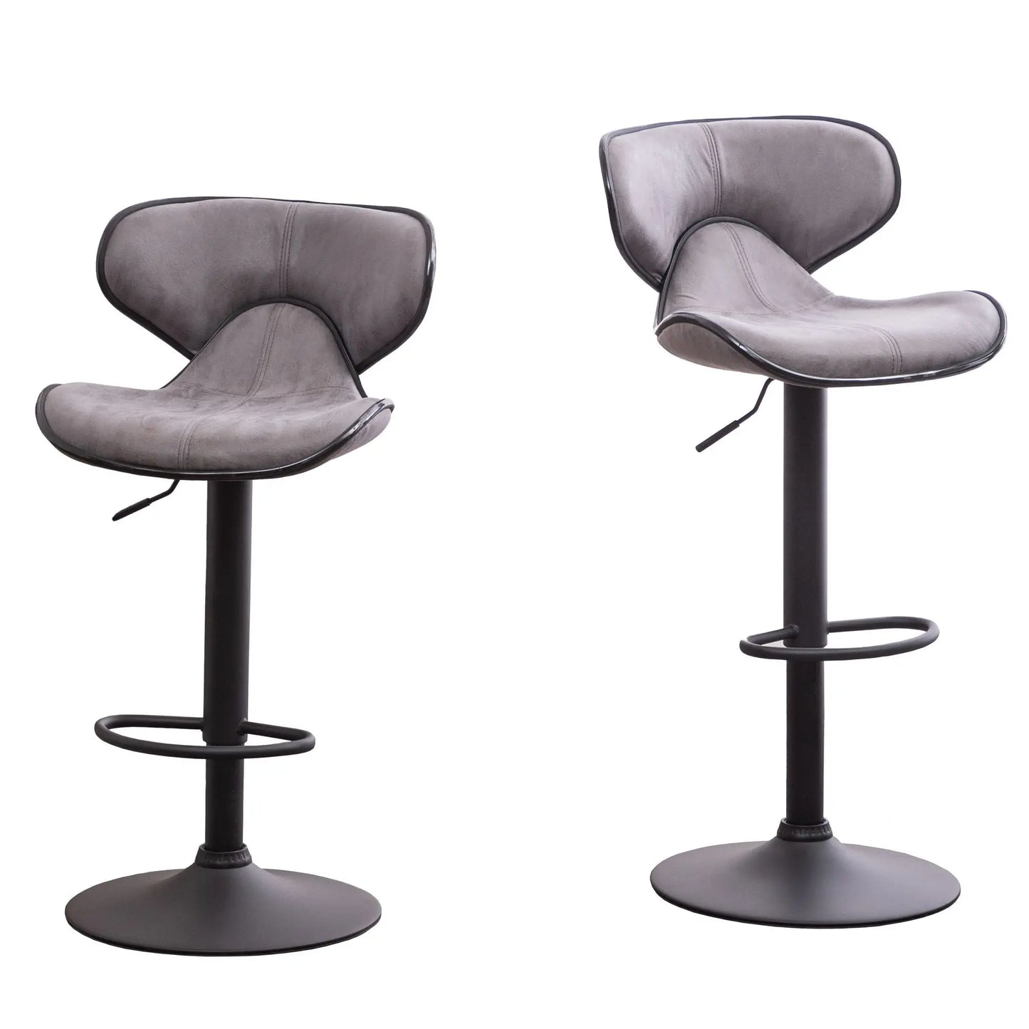 Masaccio Weathered Upholstery Airlift Adjustable Swivel Barstool with Chrome Base, Set of 2, Grey