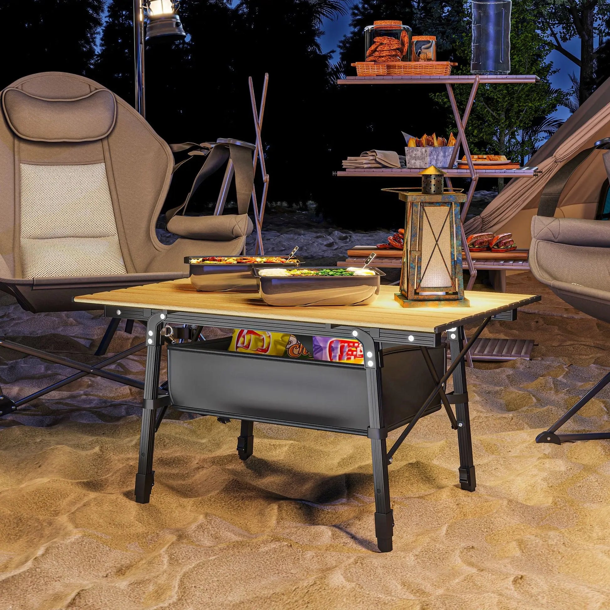 - Convenient Storage: This folding camping table is equipped with a 600D Oxford cloth storage basket that attaches easily to the frame with hook and loop fasteners. It provides quick access to snacks or small tools and is detachable when not in use